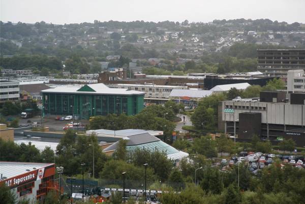 .. February 2004 .. Phase 2 This photograph shows further work in progress, with restructuring of the Old Asda building and the Llewellyn road multi storey car park.