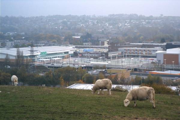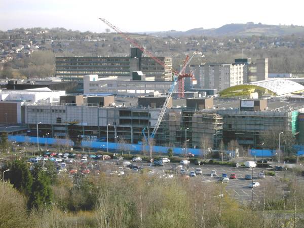 .. February 2004 .. Phase 2 This photograph shows further work in progress, with restructuring of the Old Asda building and the Llewellyn road multi storey car park.