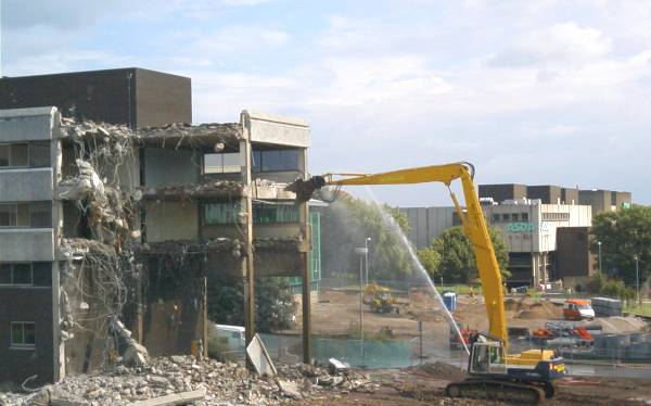 This photograph shows the partial demolition of the multi storey car park on the corner of Caradoc road and Llewellyn road. Opposite Lidl store.