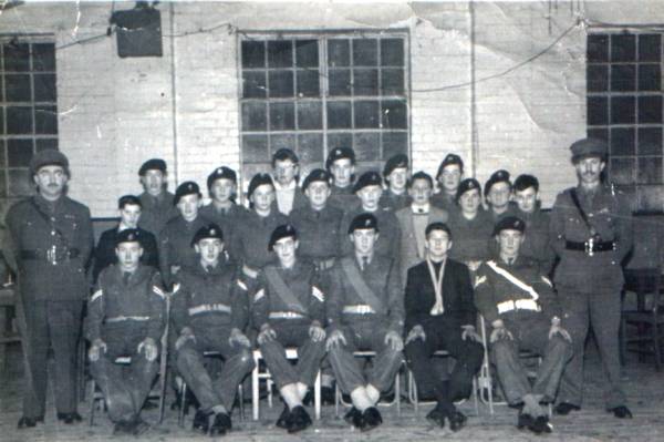 Middle row from left to right: Officer - Allistair (in civvies) - Jeff Nicholson - Francis Edwards - Wayne Callow - ? - Brian Wells - ? - Roy Tozer - Mr. Calder.
