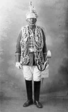 Rebecca Dawes relates: This is a photograph of my Great Grandfather, Thomas Herbert Davies Williams who lived at the bottom of Ton Road and his Brother Sam. Not sure who the person in the middle is. `Bert` used to win most `fancy dress` competitions around this time: however my Aunty Louie beat him once !! and here he is pictured holding `Second Prize`