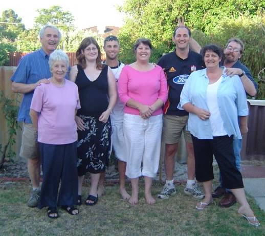 From left,  Dad (Bill) with his wife Shirley, Emma (Val's daughter) and her partner Adam, Val (My sister), Richard (My brother), Jane (Me) and husband Dave.