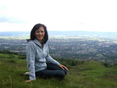 Taken on the 29/5/05 Suwanna relaxing on Mynydd Maen; (Mountain of Stones) with Cwmbran in the background.